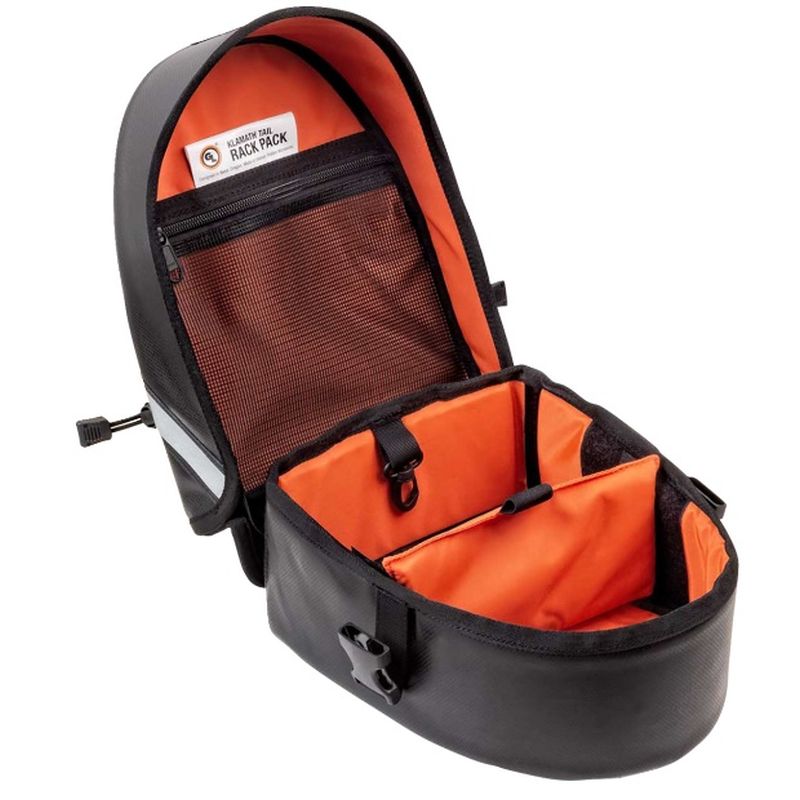 - 4 liter soft luggage case features a zipper-less nested clamshell design inspired by classic motorcycle rally racing packs