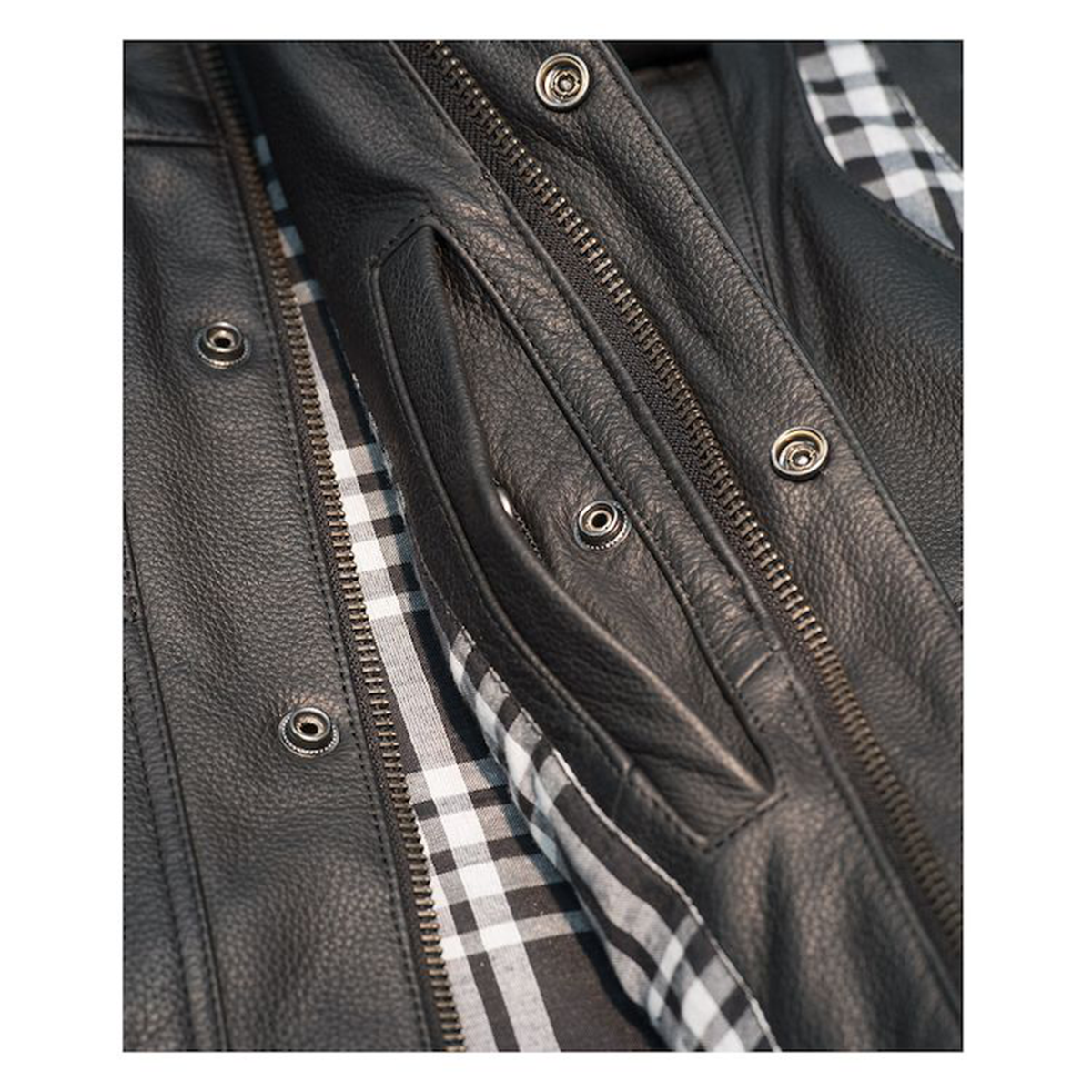New Icon Regulator D30 Stripped Street Motorcycle Black Leather Vest – Pick Size