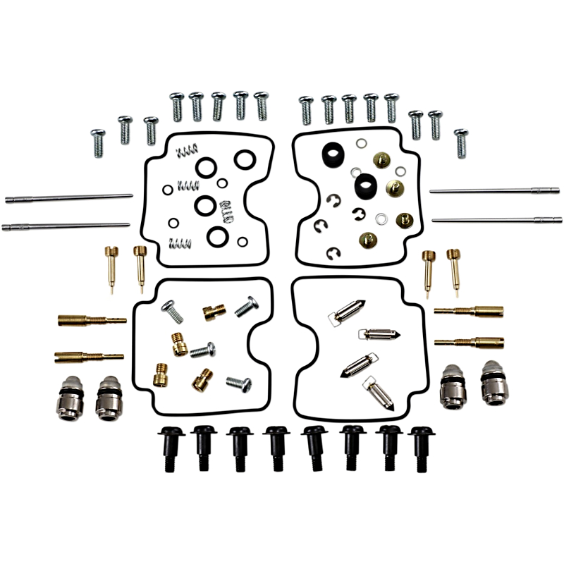 • Kit includes all necessary O-rings, gaskets, jets, needle, mixture screw, float bowl screws, float valve needle and seat (needle jet and other pressed-in jets are not included in kit)